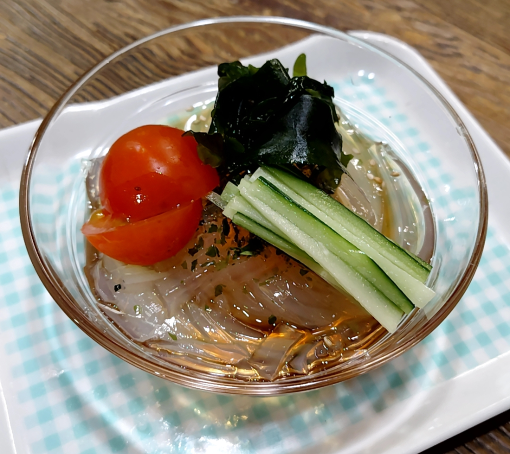 3月ですね🌸蒟蒻からトコロテンに衣替えですね🍥自家製の濃くて歯ごたえバツグンのトコロテンをサラダにしてみました♪